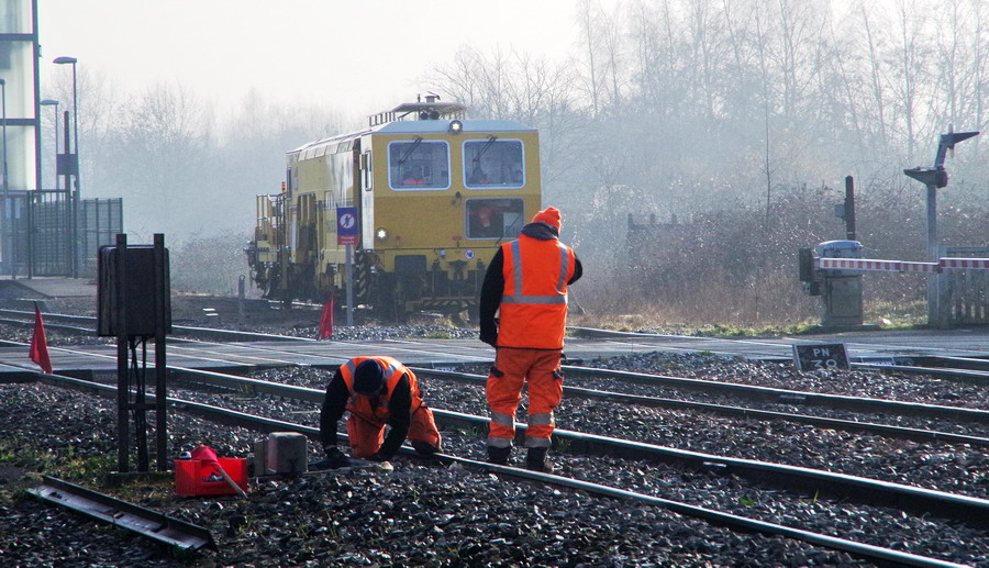 prise de mesure avec une règle Geismar RCA 1435 au niveau du PN de la gare Ham et d'Eppeville le 20 février 2019