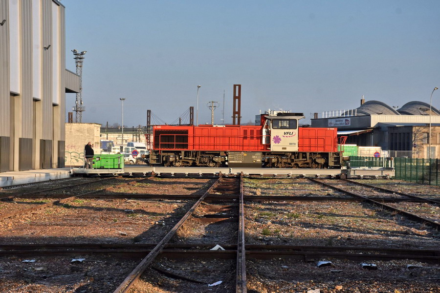 - G 1206 BB 5001687 ou 5001689 de Ferrotract en livrée grise et violet (sous le hall pour le transfert sur le pont transbordeur)