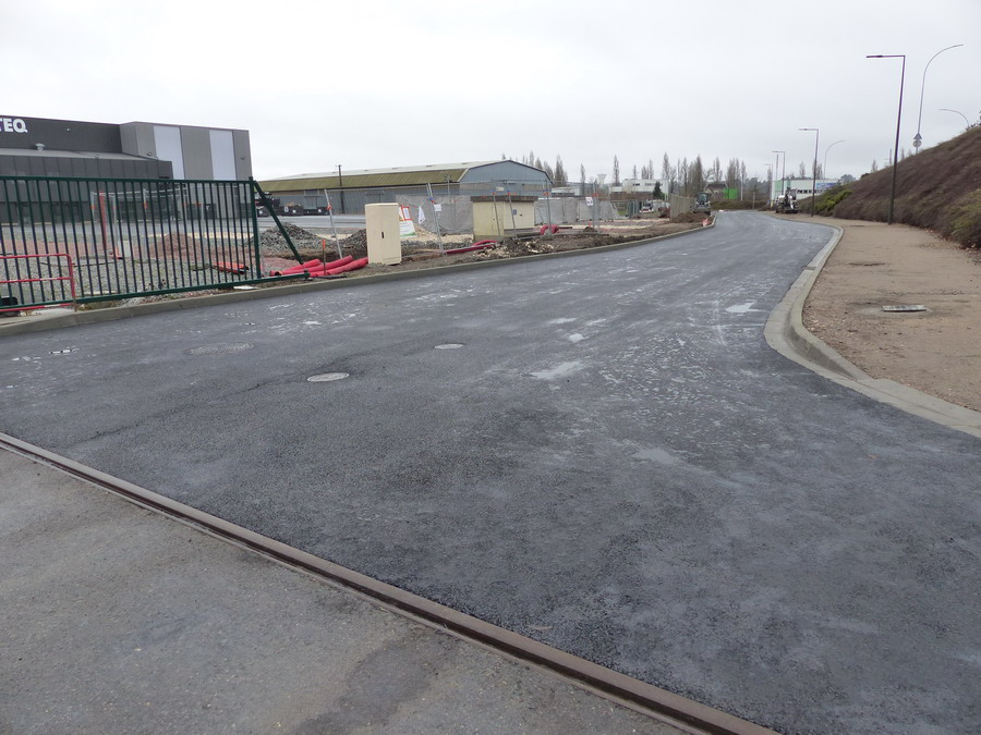 rue de la Grange Quillet en direction du hangar aux avions avec la restauration de la 231E37 le 16-12-2018