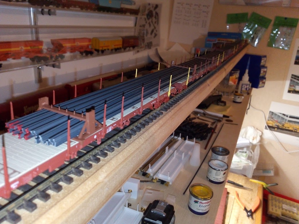 la rame est formé de 5 wagons type RS chargé de rail Maketis