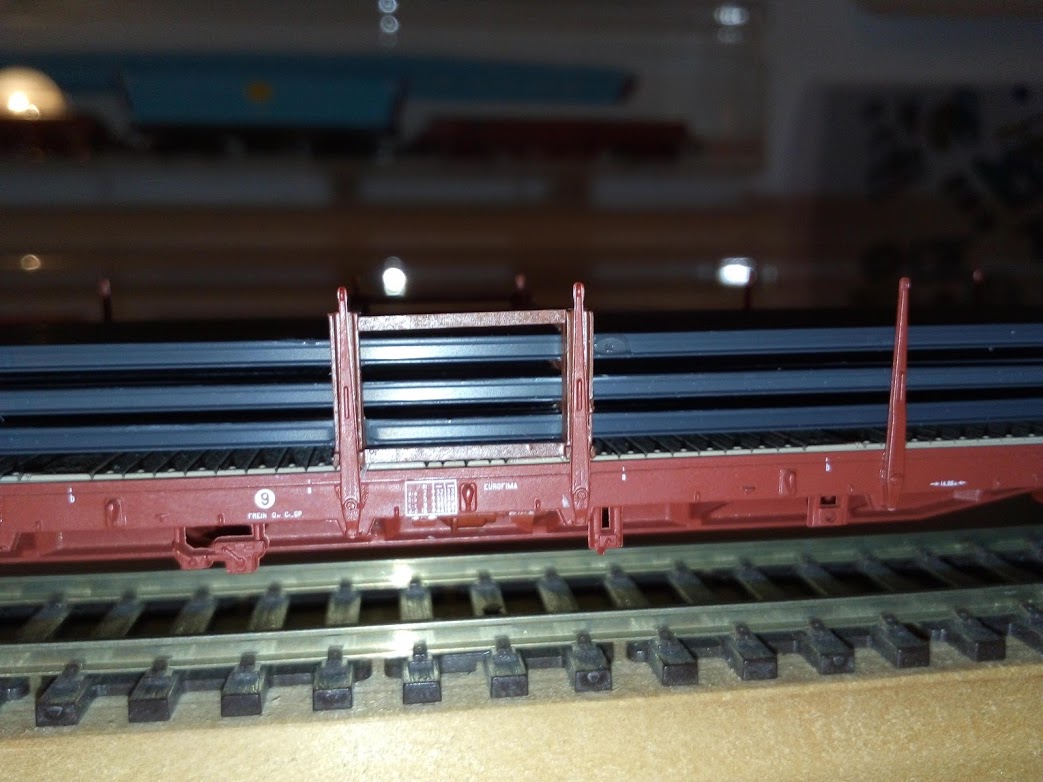 pour info seul les rail sont collé sur le wagons du milieu le reste et juste calé