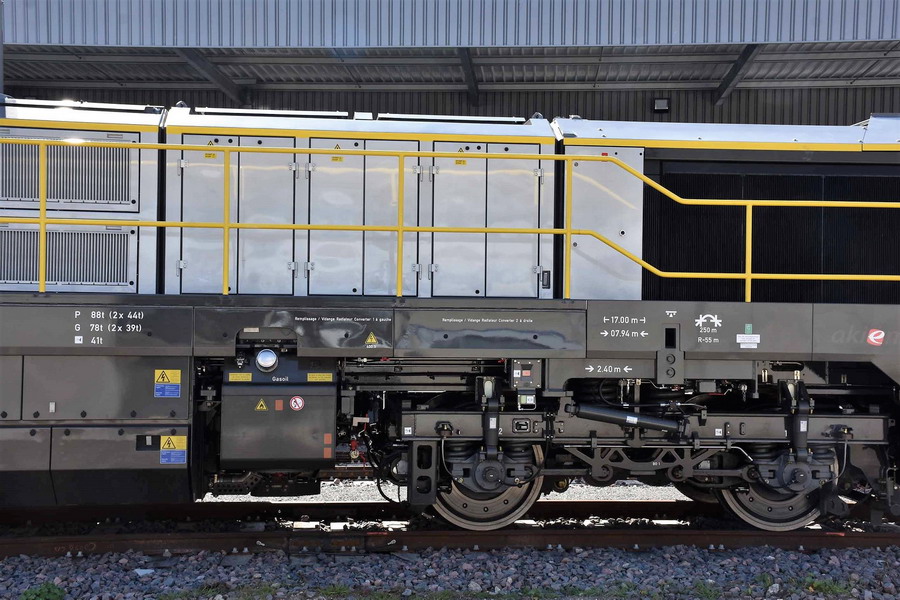La traduction en francais Voici le 'BB 79000' - à propos des nouvelles locomotives Akiem pour la SNCF Infra Il s’agit de l’un des contrats les plus importants pour Vossloh à Kiel: le développement et la construction de la nouvelle génération de locomotives de manœuvre et de transport de marchandises pour les chemins de fer français, sur le modèle Vossloh DE18. Le 07.01.2019, une locomotive de ce type a été vue à l'extérieur, lors d'une première course.