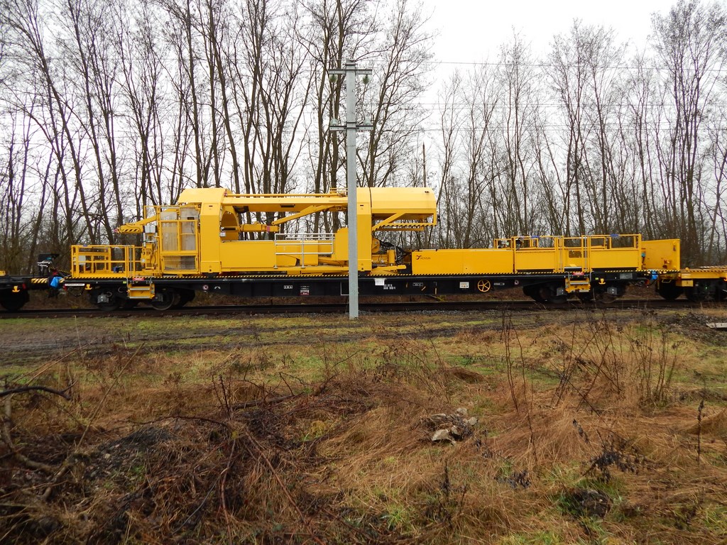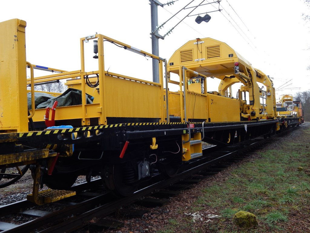 je pense, sous toutes reserves, qu'il va chercher un poteau sur un wagon plat (il était attelé à 2 WTT TSO), le fait pivoter verticalement et le maintient le temps qu'il soit boulonné...... :idea: