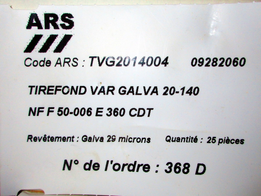 Chambourg sur Indre : étiquette sac de tire-fonds neuf. le 25-02-2019