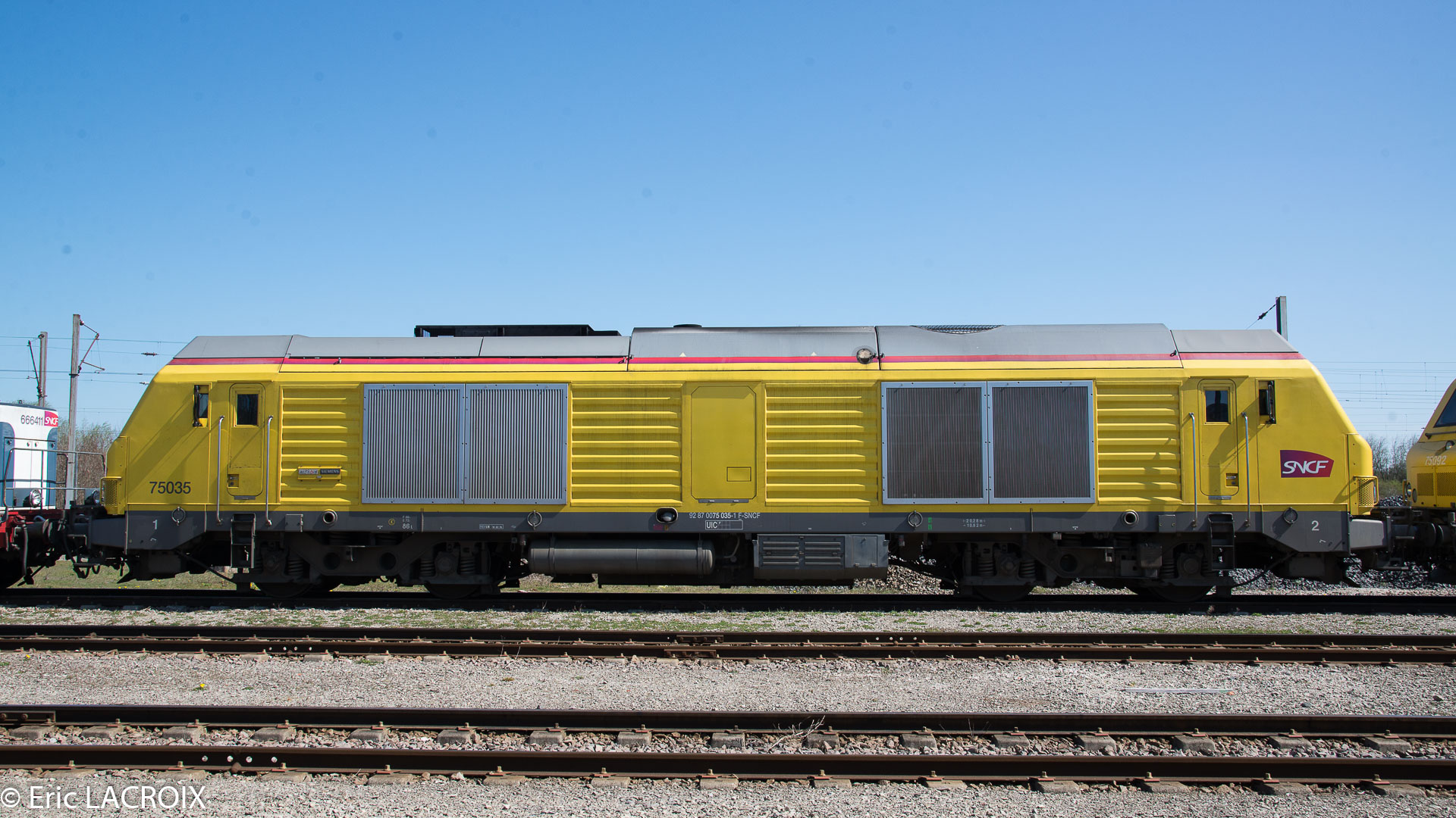 La 75035 (mise en service le 19-07-2007) en livrée Infra ex Livrée Fret puis livrée Akiem dans le dépôt de Saint Pierre des Corps