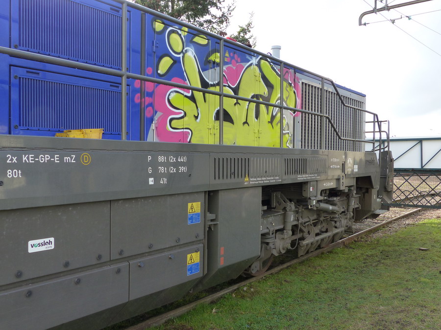 La voici après désaccouplement pour manœuvres de sa sœur ( 005-3 ) aux ateliers des Flandres ( Colas Rail ) :