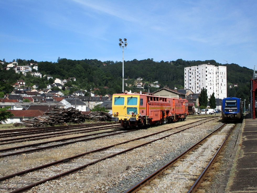 Une rame de wagon trémie à bogies chargés, mais sans aucune loc en tête, se trouvait sur une troisième voie. Ce matériel doit être prochainement utilisé pour des travaux entre Tulle et Ussel.