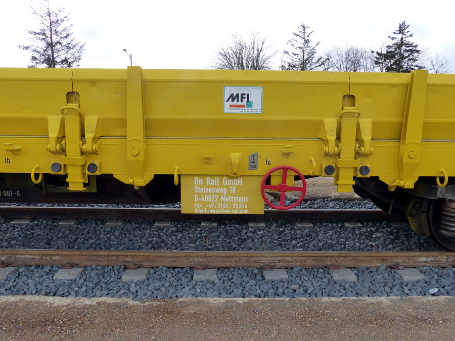 Voici le wagon 37 80 3940 067-6 Res RIV D-ORME de la société On Rail Gmbh (Allemagne) pour la société de location de wagons M.F.I sa (Matériel Ferroviaire et Industriel) de Strasbourg qui est une société spécialisée dans l'achat-vente, la location,