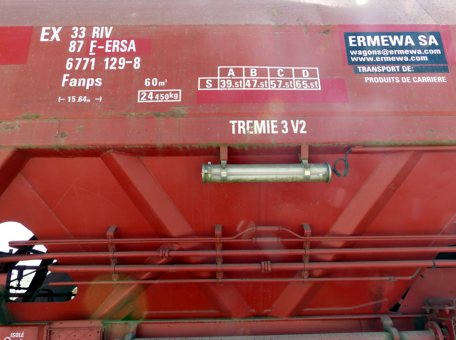 Voici le wagon Trémies EX 33 87 6771 129-8 Fanps RIV F-ERSA location ERMEWA SA