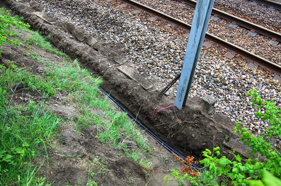 Voici quelques photos du 25 avril 2019 de Gtr Lefèvre de l'installation de la fibre optique aux environs de Montescourt (02) PK 140 + ou - de la ligne de Creil à Jeumont, entre les gares de Mennessis et de Saint-Quentin.
