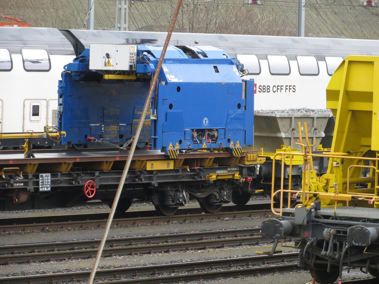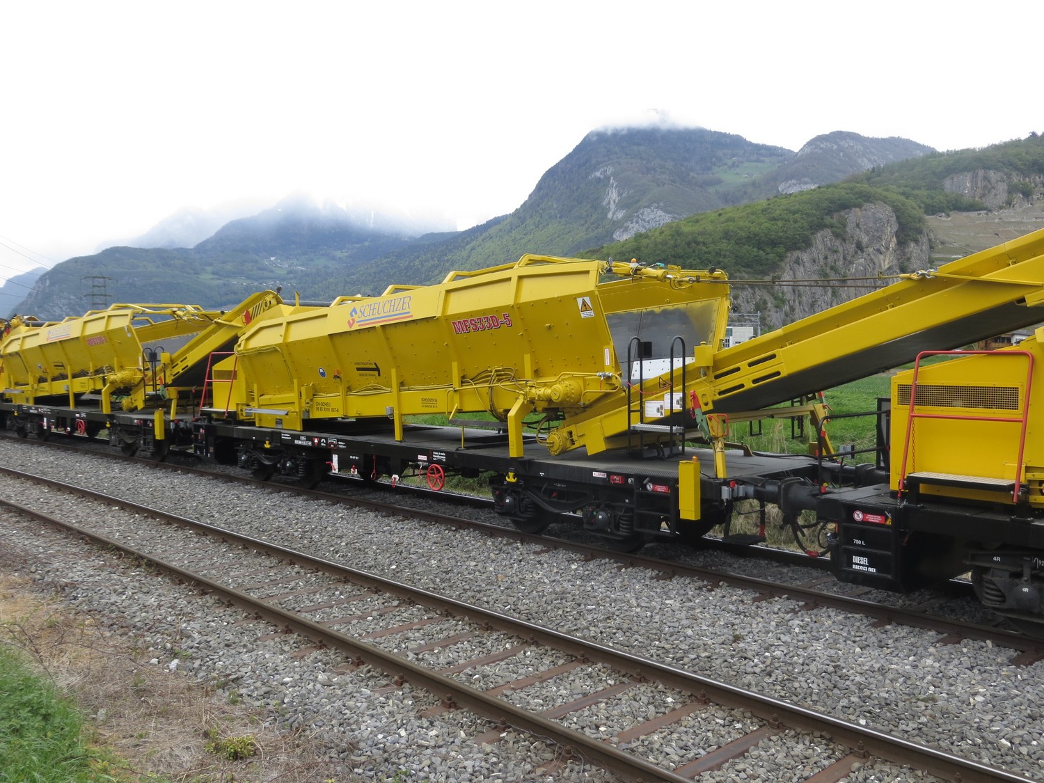 c'est un wagon utilisé jusqu'ici pour le transport des traverses du tunnel de base du Gothard que Scheuchzer à modifier pour le transport de portique.