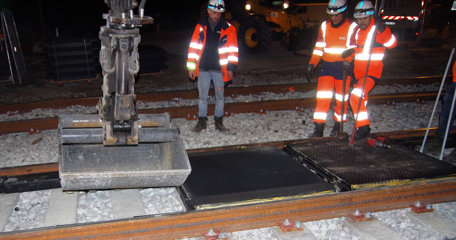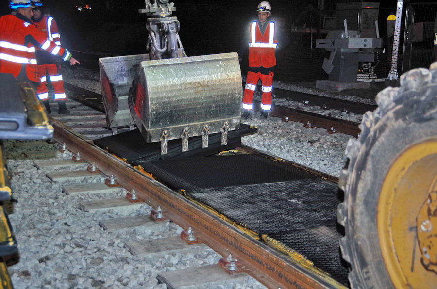 POSE DES ÉLÉMENTS STRAIL, ENTRE FILES DE RAILS