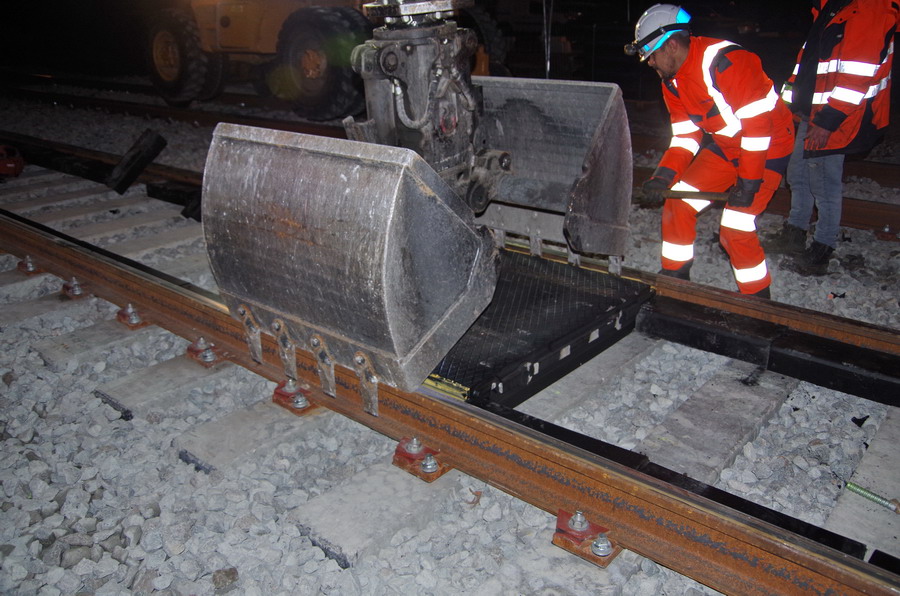 POSE DES ÉLÉMENTS STRAIL, ENTRE FILES DE RAILS