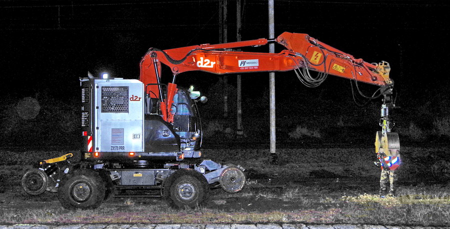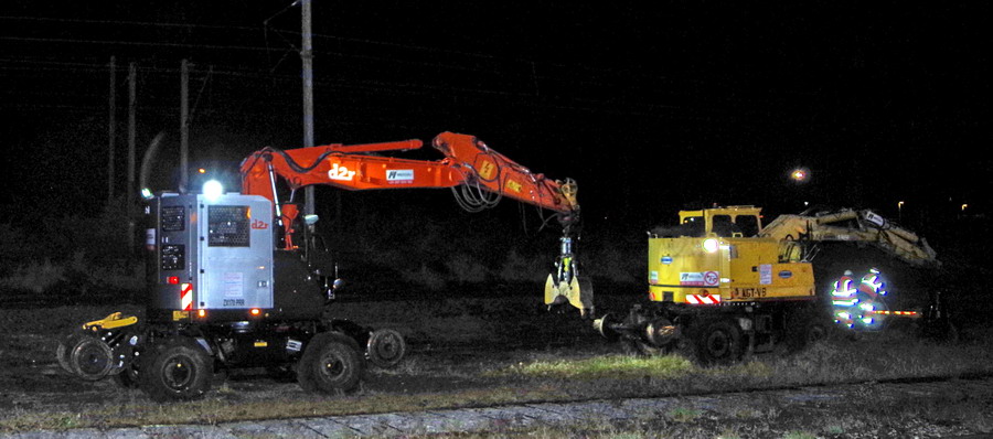 avec la présence sur le chantier de deux Pelles Rail route :