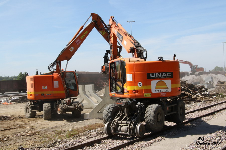 Voici la suite du reportage de Michel Guyonnaud le 23 mai 2019 avec l'utisation de deux Pelles Rail route UNAC de Colas Rail