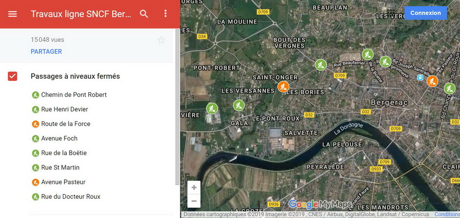 Les passages à niveau concernés à Bergerac : mise à jour du 9 mai 2019