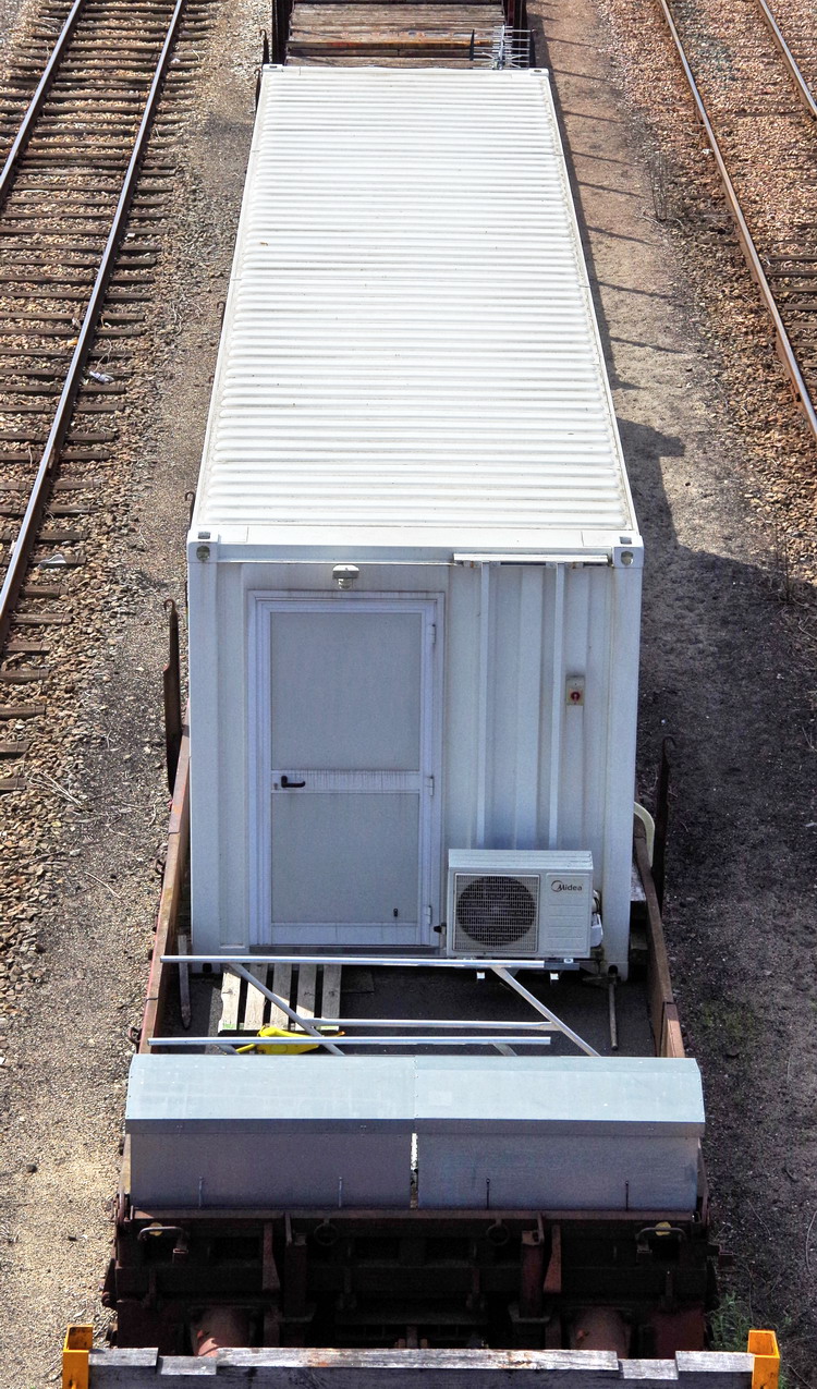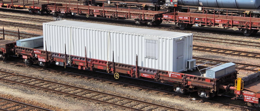 Voici le wagon 80 87 979 4 708-9 Uas R55 6 F SNCF-PN - Point d'attache Villeparisis avec son bungalow de cantonnement