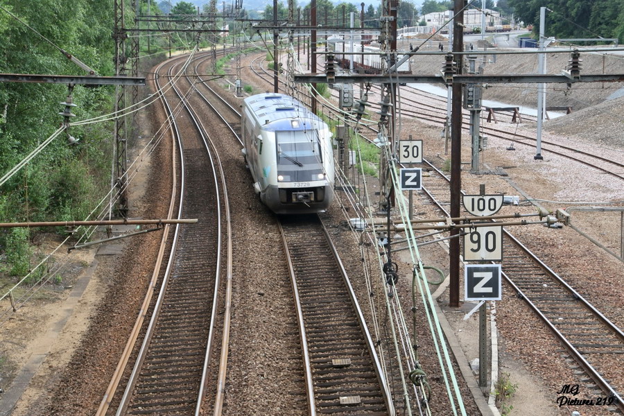 vue sur l'ensemble des engins et rame de TTx sur la base de travaux du Puy-Imbert le 16-07-2019