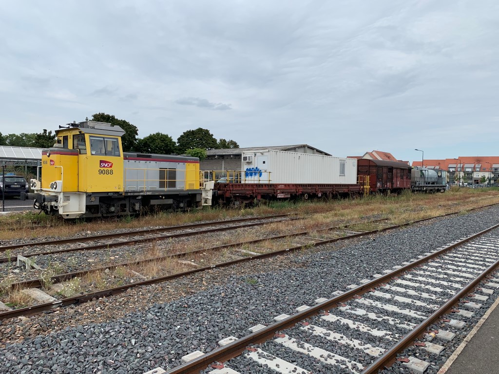 Le désherbeur vu en gare de Molsheim, hier le 11 septembre 2019 avec un G54 et un R39 (voir sujet dédié à chacun de ces wagons) avec le Y9088