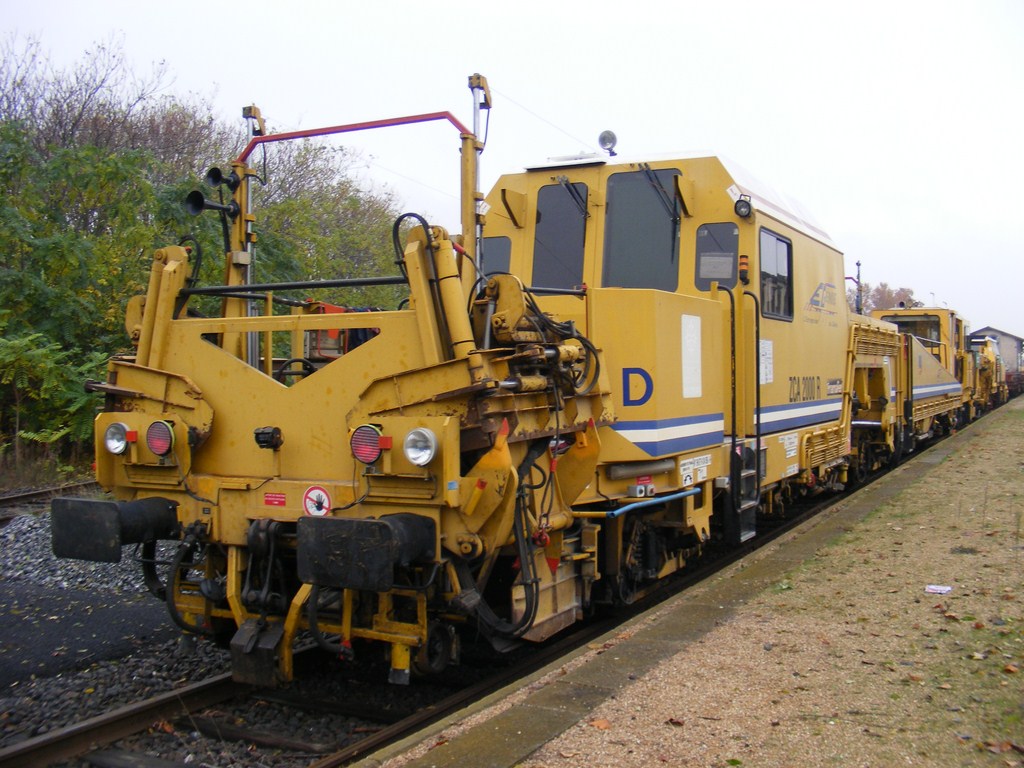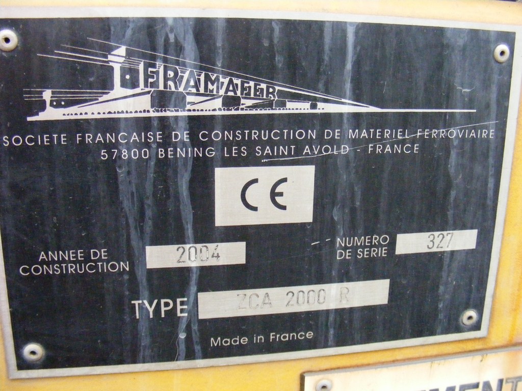 Voici la ZCA 2000 R d'E-Génie à Pau le 20/12/08, elle vient juste d'être acheminée car tous les organes de mesures et de bourrage sont encore maintenus par les chaînes.