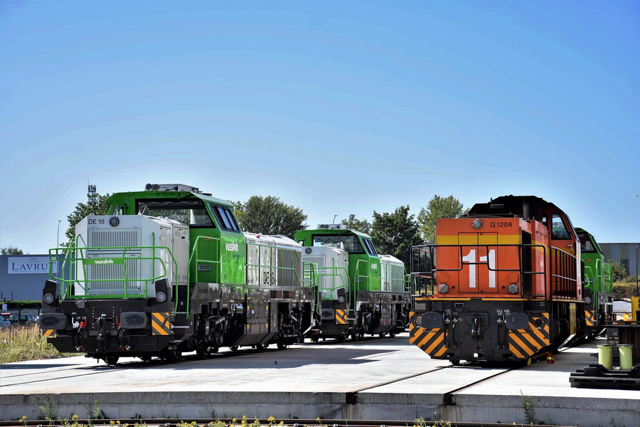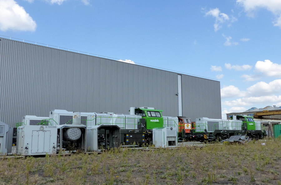 vue sur l'ensemble des Vossloh à droite de l'atelier IMATEQ à SPDC le 08-09-2019