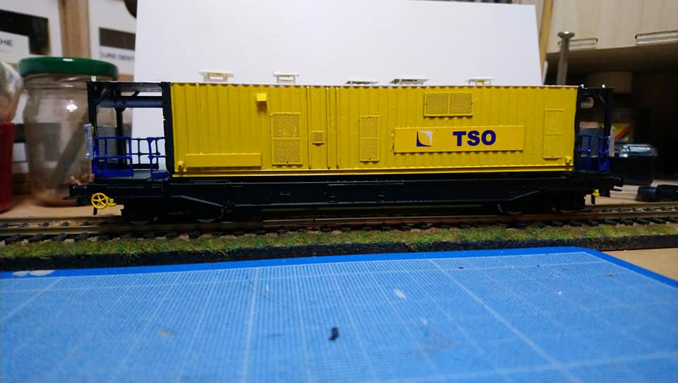 J'ai un doute sur le fait que le conteneur soit trop haut. Il s'agit d'un conteneur Herpa, et comme les conteneurs sont standardisés, il m'étonnerait qu'Herpa se soit trompé. Et je vois mal Bernard se tromper sur ce point. Je pense plus à une illusion d'optique, d'autant plus que sur la photo ci-dessus, il manque les éléments d'extrémités, ce qui fausse la perception.