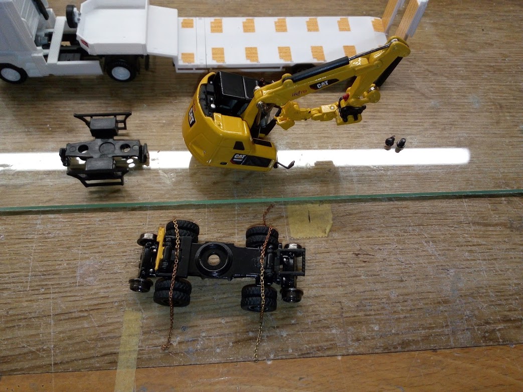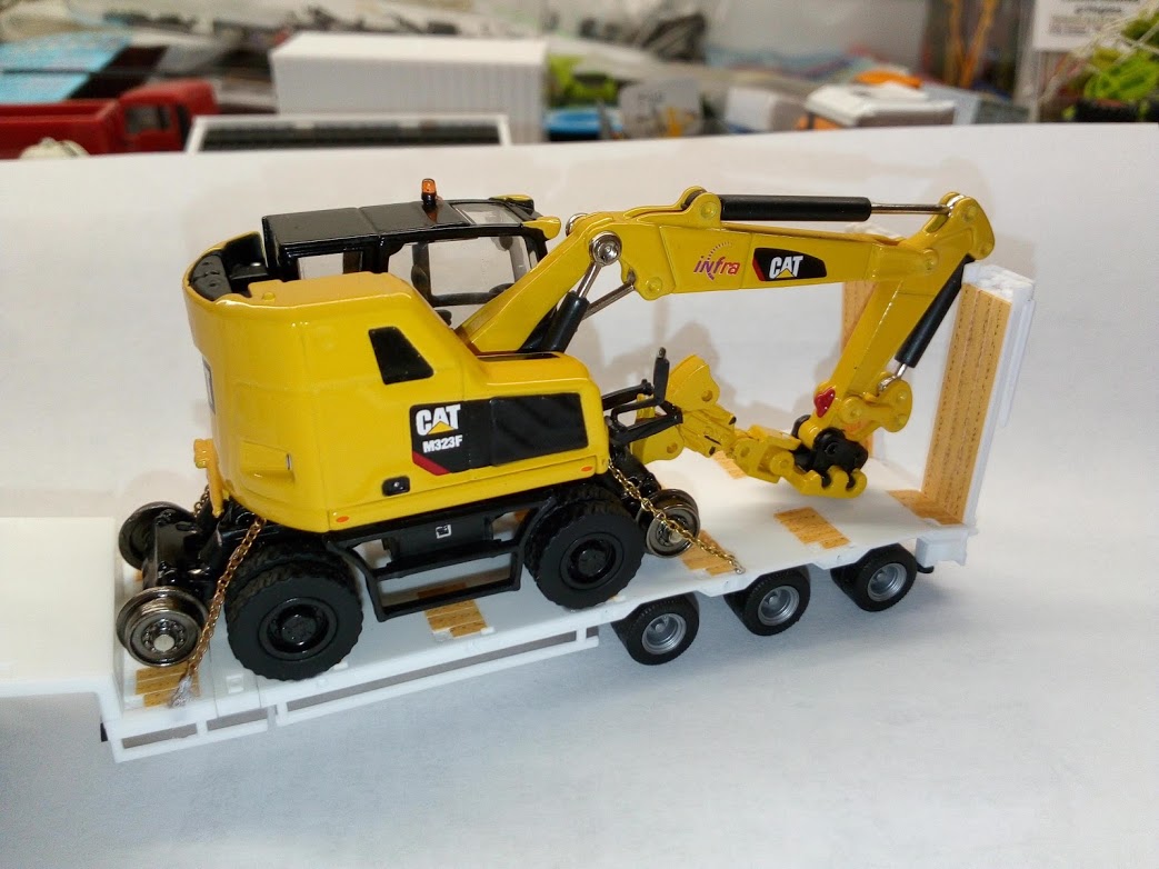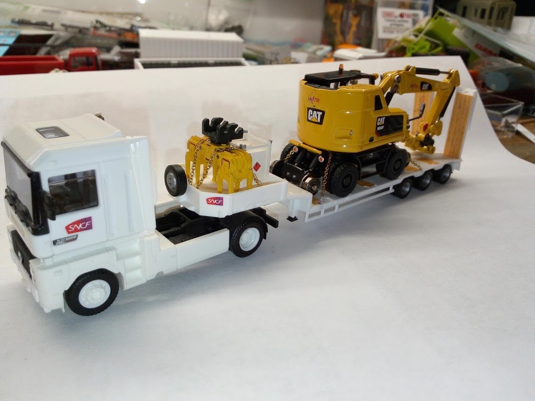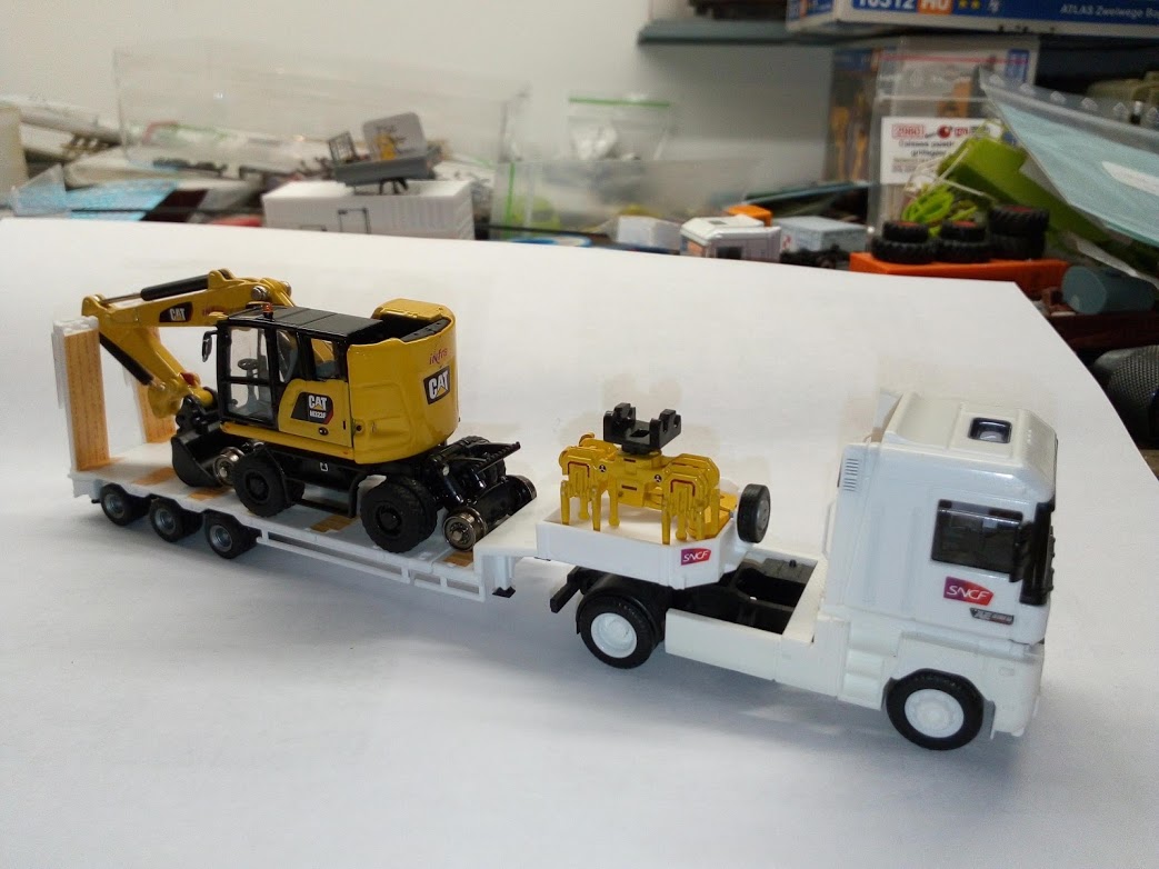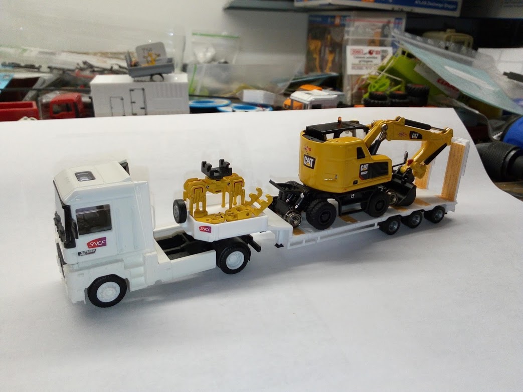 pour info sur la pelle Cat j'ai modifier le godet pour qu'il soit dans le bon sens pour le transport