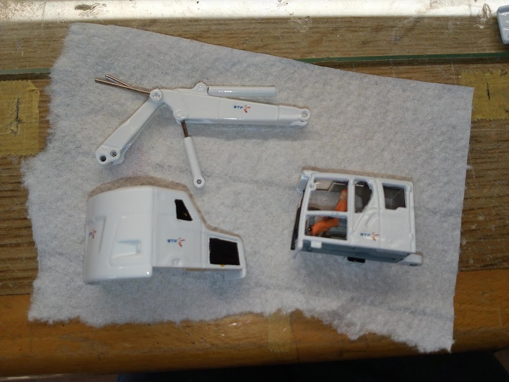 après avoir lavé le modèle il reçoit une couche d'apret puis une couche de gris alu (pour recouvrir tout les différente couleurs du modèle) puis mise en blanc