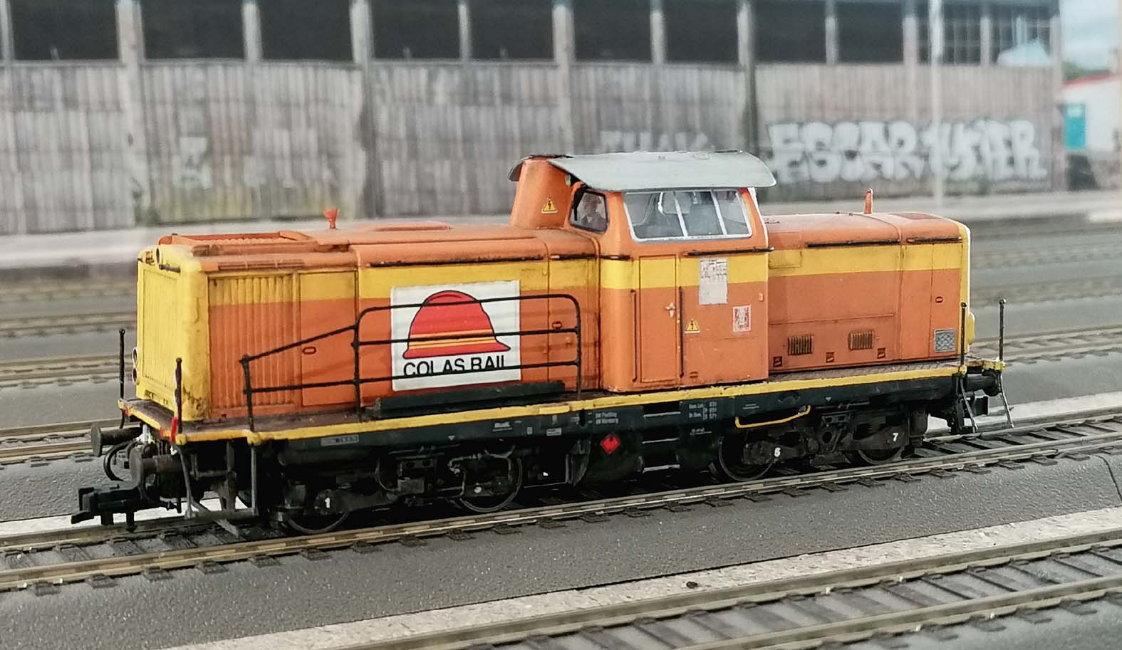 En + : belle redécoration du modèle Roco présent dans de nombreux convois dont je suis assez satisfait (merci pour vos encouragements). La numérisation est un plus notamment pour un convoi en UM. Première réalisation de rambardes en laiton pour moi.