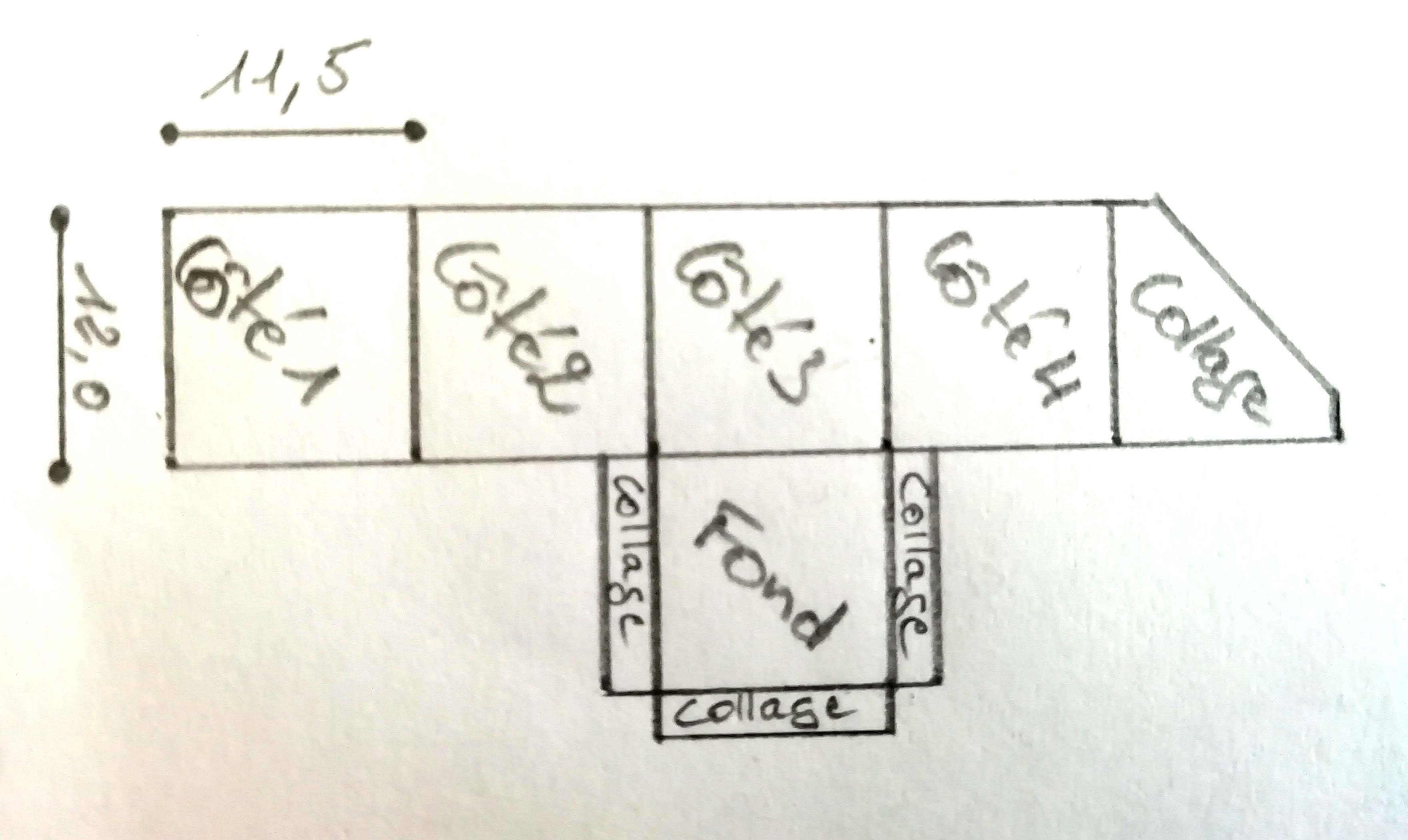 A la vue de ta photo, je me suis amusé à faire ce petit plan. La photo d'un modèle réel montre qu'un coup de feutre peut reproduire facilement les coutures de angles.