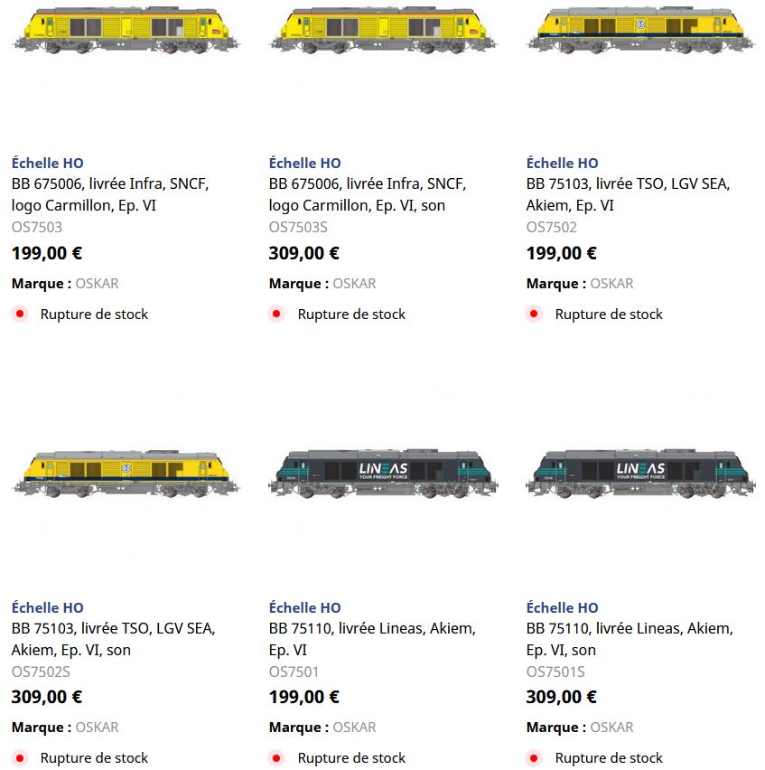 Scoop ! Oskar va effectuer son grand retour sur le marché français grâce à un nouveau distributeur national. Ce fabriquant italien s'était fait connaitre il y a quelques années avec ses BB 475000 très réussies. Oskar confirme la sortie des BB 427000 et BB 437000 courant 2021. Des nouvelles livrées de 75000 sont également prévues. Il faut espérer la même issue pour les BB 63500.