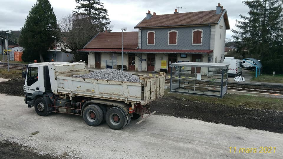 Le 10 mars , un premier train de travaux pour la ligne des Horlogers arrive de Dijon, il passe Franois.