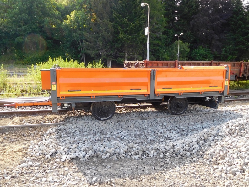 Petite remorque D2R vue en gare de La bastide - Puylaurent avec la pelle D2R ZX 170 PRR de la société EDC Terrassement.