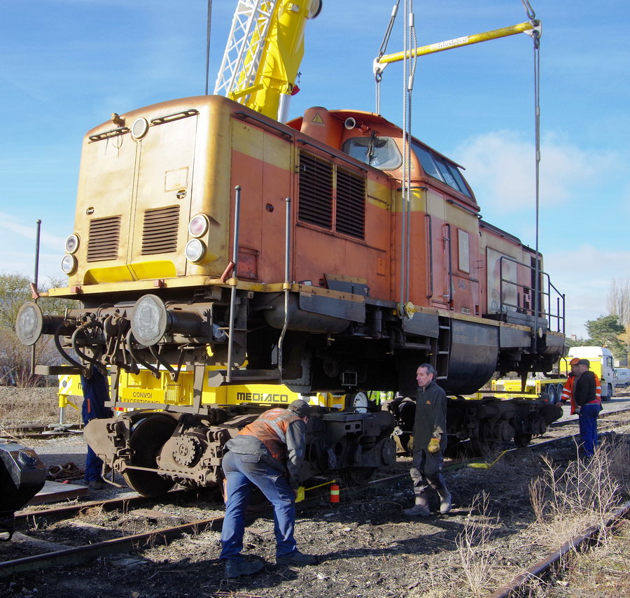 fin du replacement de la machine sur les bogies d'origine révisés à Chaulnes le 06-03-2018