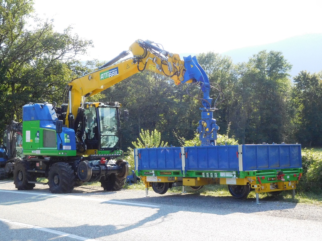 Voici une pelle toute neuve (2021) pour la société Attirail, croisée ici à Pugnieu (01) en juin 2021.