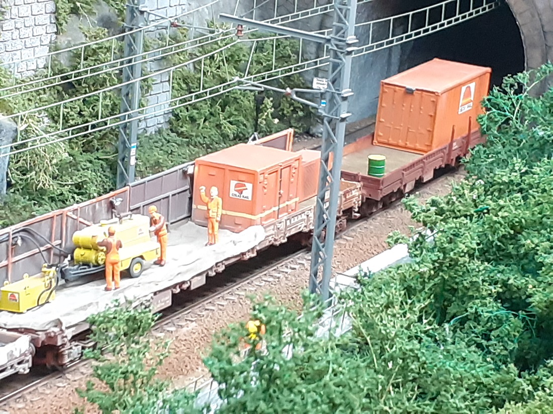 La composition du train n'étais pas complète il me manque encore 3 ou 4 wagons avec d 'autre engins dessus ,il sera terminé officiellement pour Savoie Modélisme en 2023 voilà maintenant place aux photos