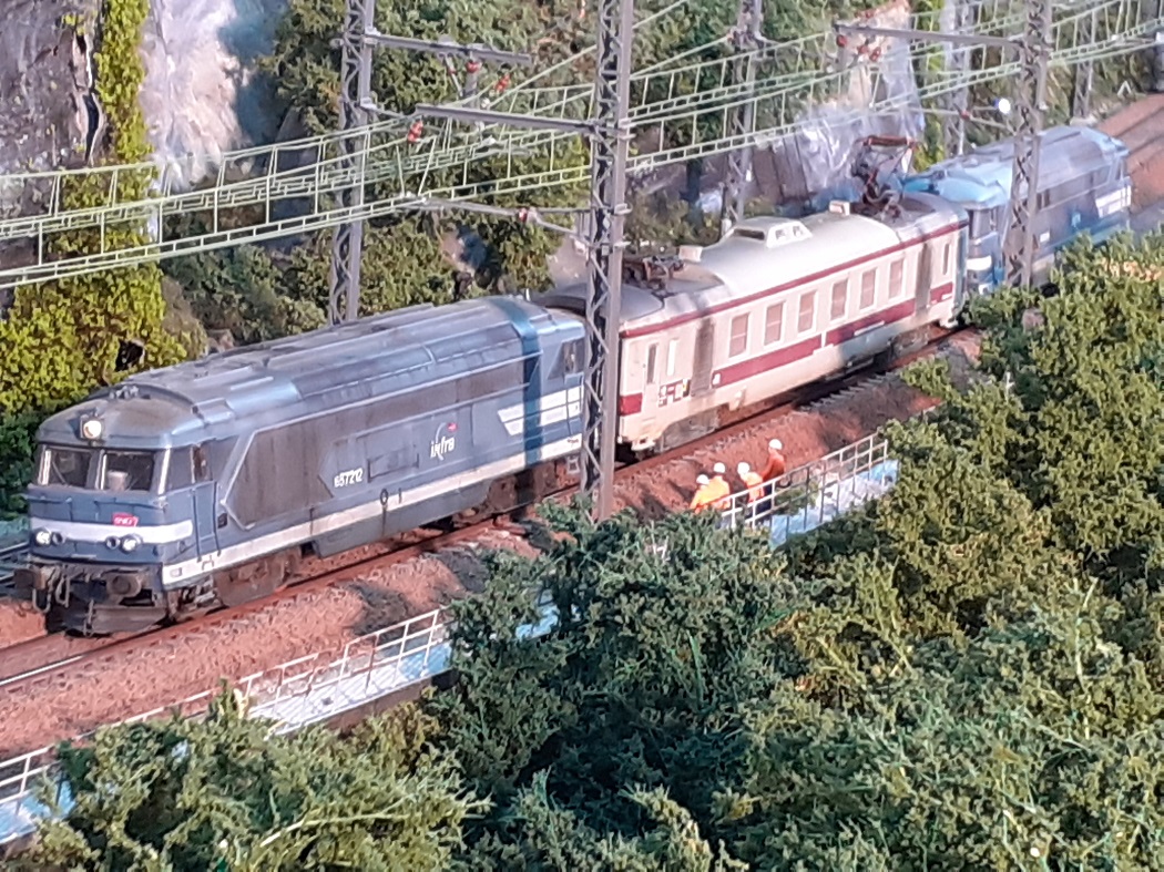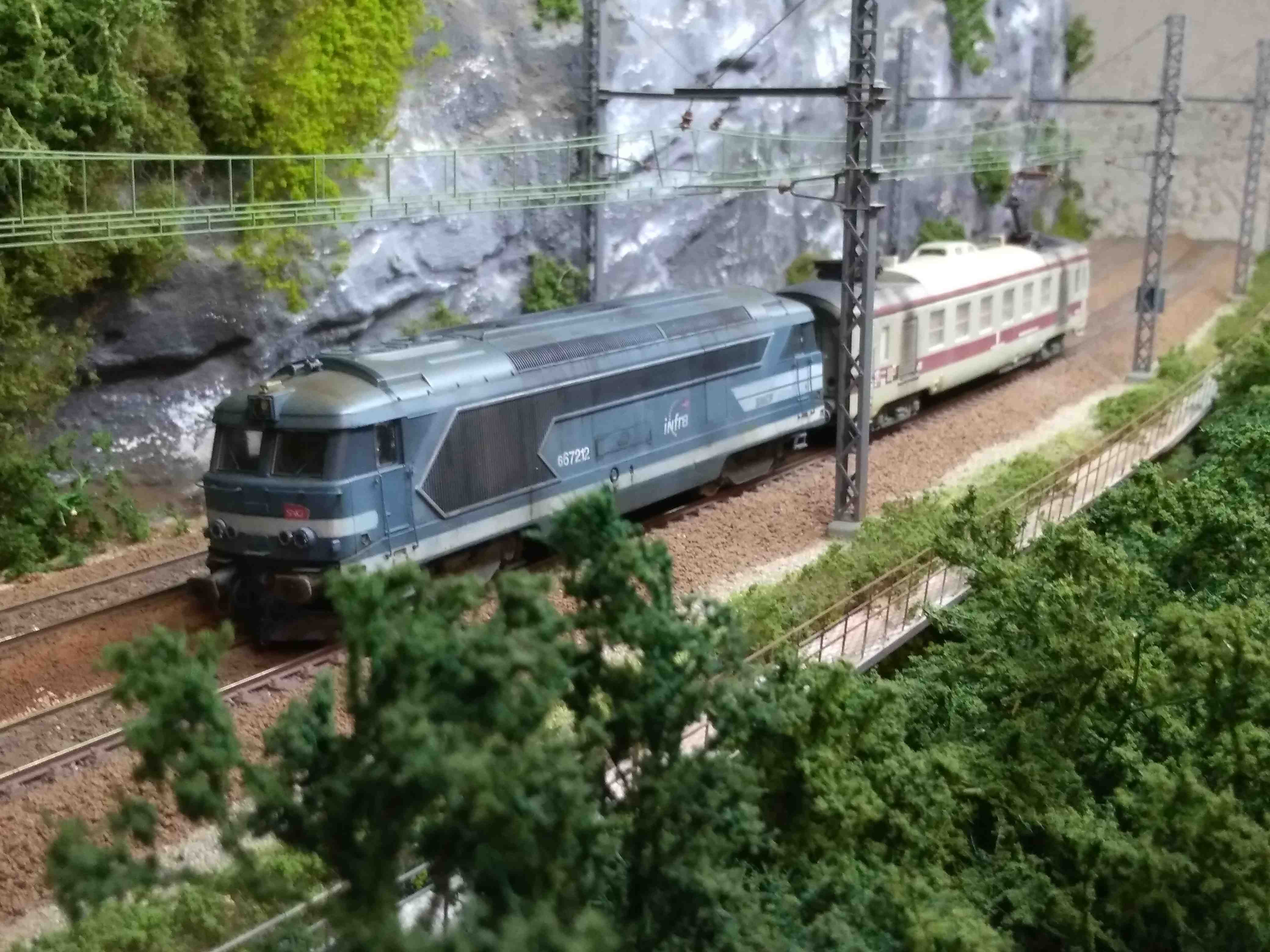 Alors je vous présente ma BB 67212 sur base Lima (67215) et ma voiture graisseuse de caténaire sur le réseau du Vivier du Lac du CMF Albens (73 Savoie)