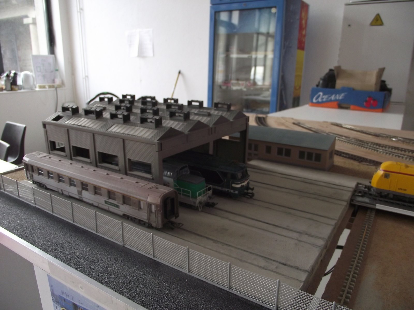 Après un long moment sans rien avancer, j'ai repris le montage du réseau. Décors de la partie "cour marchandise", motorisation du pont transbordeur,