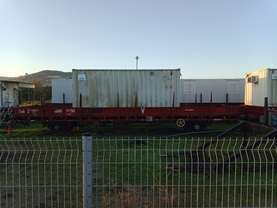 Voici une partie du wagon 40 87 959 4 042-3 Us K55 2 SNCF-CH Point d'attache Chambéry avec son bungalow