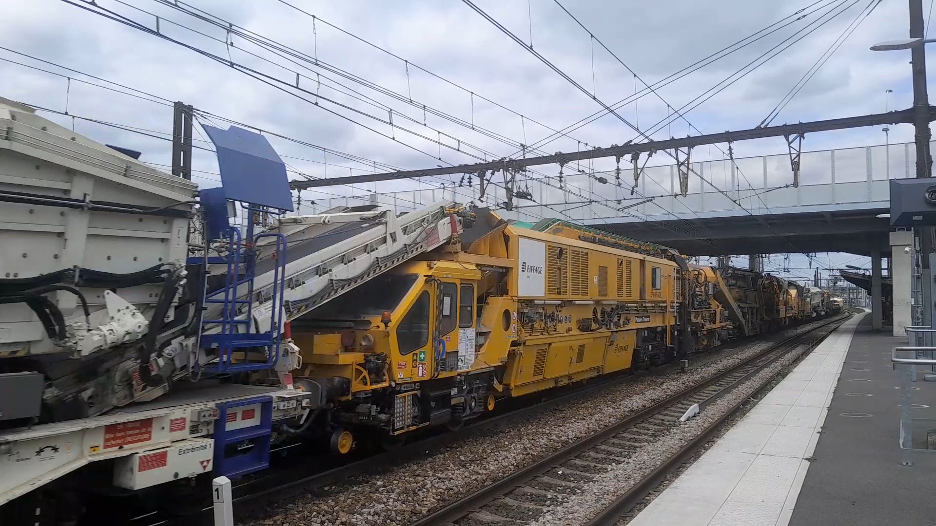 G1206-1480 Captrain/ Alpha Trains + BB61733 VFLI + G1206 VFLI non identifiée + BB 60044 Eiffage + divers VAD Eiffage + quelques plats + des ballastières Ermewa neuve + dégarnisseuse RM 95-800 Eiffage + Bourreuse 109 FRP-Dynamic Eiffage