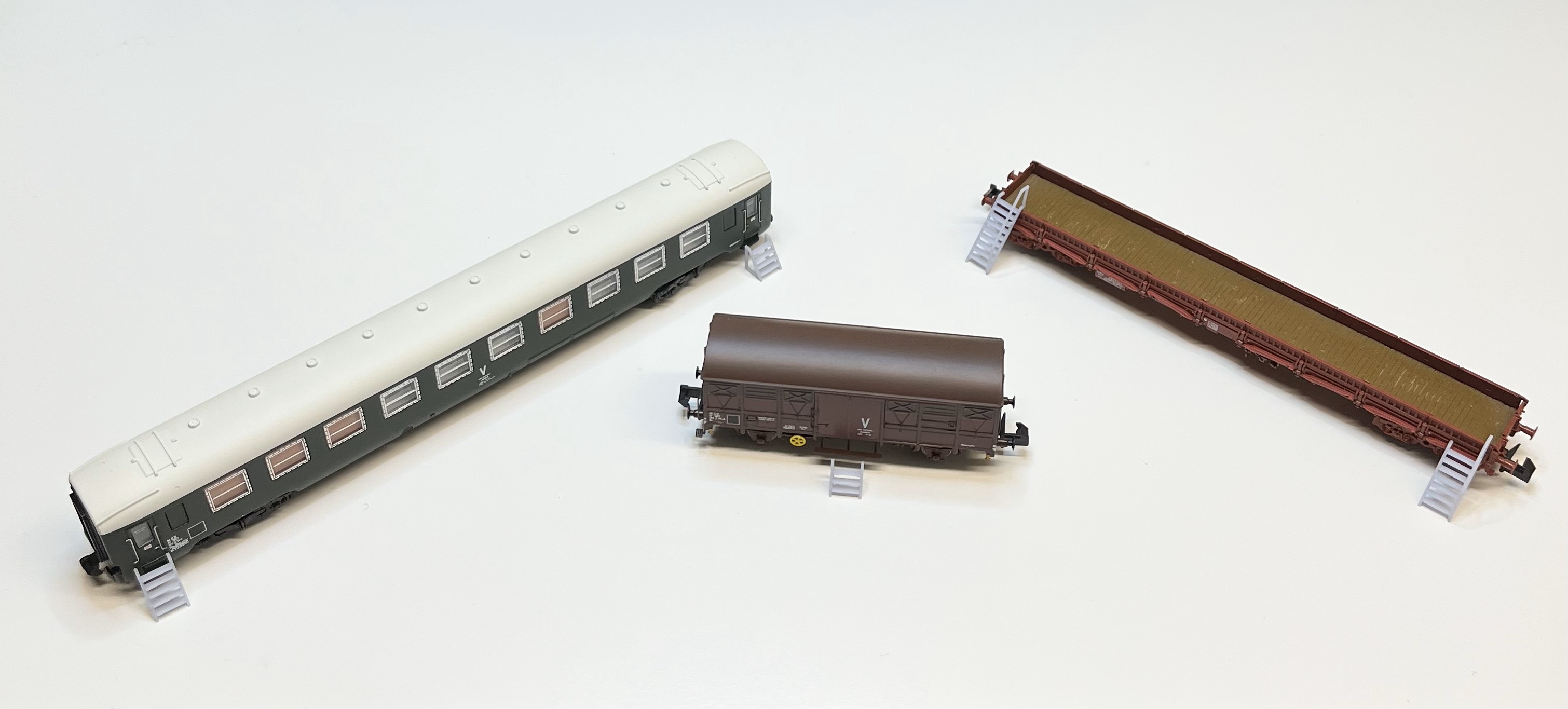 Nouveautés FG 3D en HO et en N. Le bungalow de chantier pour wagon plat avec sa passerelle d'accès.