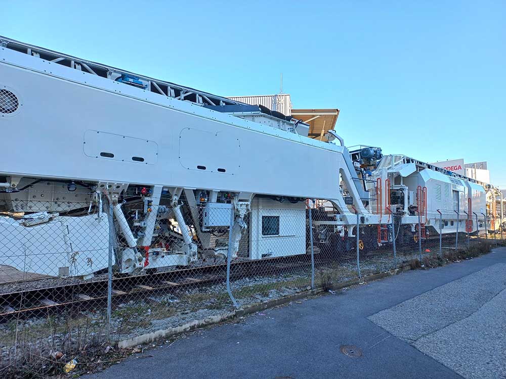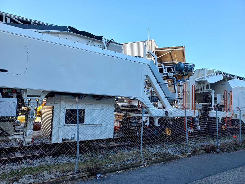 Sur celle de CGF, il y a 2 cabines, l'alimentation, la réserve de carburant et la génératrice électrique se trouvant derrière la chaîne de dégarnissage par rapport au sens de marche. Elle ne possède qu'un seul crible, a priori comme celle d'ETF.