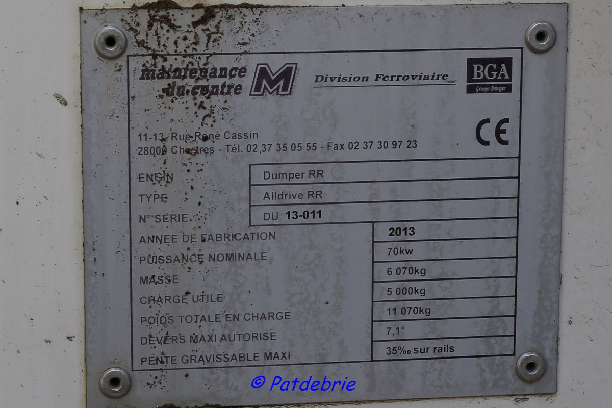 J'ai trouvé cette bestiole à Gretz (77). En apparence, il s'agit d'un simple dumper rail/route mais celui-ci est équipé d'un radar (je suppose!) et d'une camera.