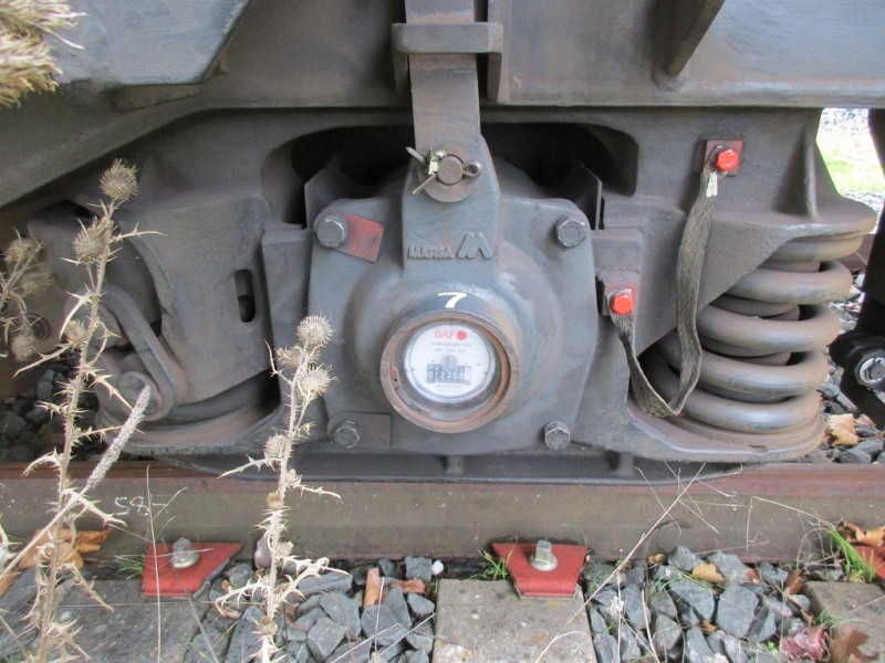 Sur le second bogie de l'extrémité 1, la roue n° 7 est équipée d'un hubodomètre :