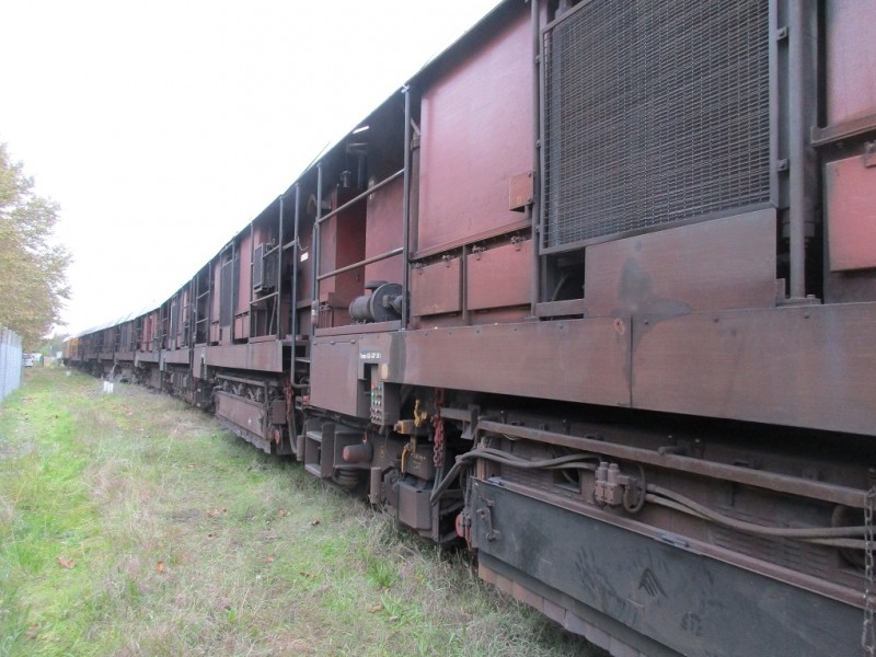 Viennent ensuite les véhicules de meulage avec une disposition particulière sur les essieux. Côté gauche du sens de la marche, de l'extrémité 1 vers l'extrémité 2, les roues sont numérotées de 1 à 55 sur chacun des 28 essieux (chiffres pairs pour les roues côté droit). Toujours à partir de l'extrémité 1 et après le wagon à deux essieux, la caisse de la première unité de meulage :