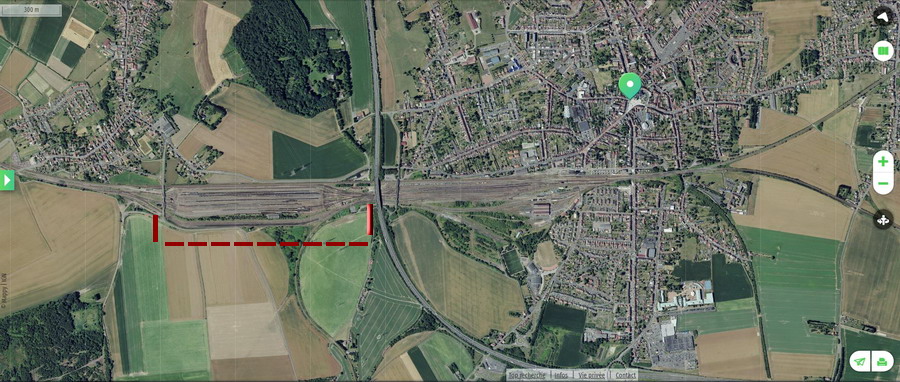 situation du triage de Somain avec la partie gauche pour les travaux le long de la rue d'Aniche