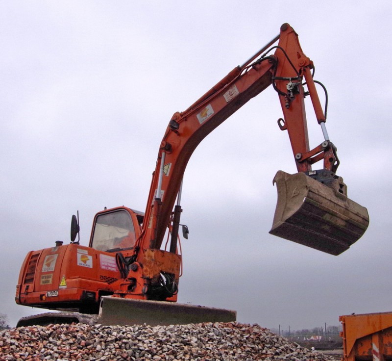 Pelle à chenilles Neuson 8002 RDV - 88 Colas Rail F 6200069 (pour le ballast) à Longueau le 26-11-2018