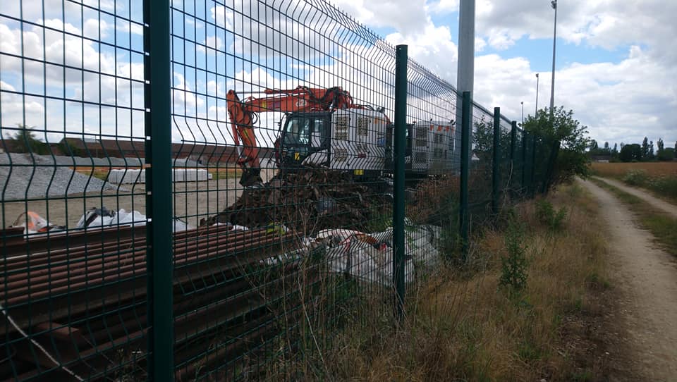 Voici en photo le début du RVB en gare de VOVES ( EURE ET LOIRE ) renouvellement voies 2 et pose d'une aiguille pour que la voie 4 rejoigne la voie 2 pour les train en provenance de CHARTRES .