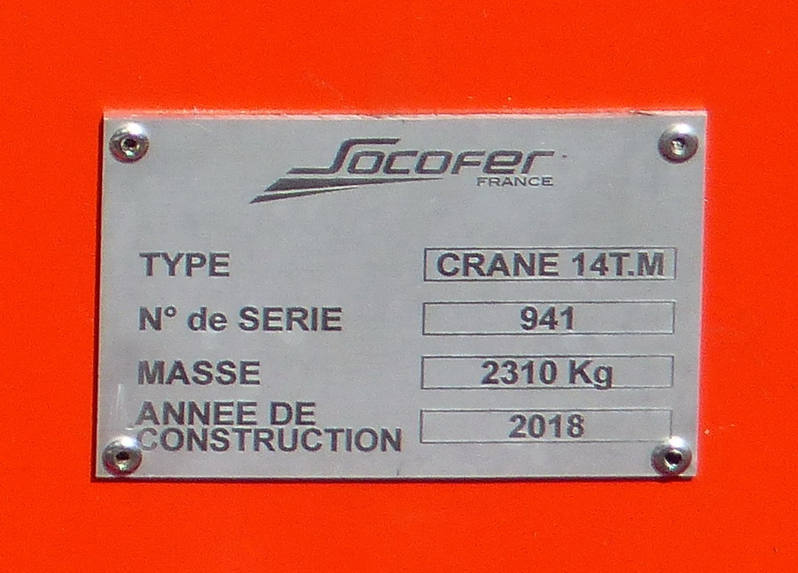 Draisine SOCOFER de type A0114 avec une grue de type CRANE de 14 T.M n° de série 941 et d'une Masse de 2310 kg