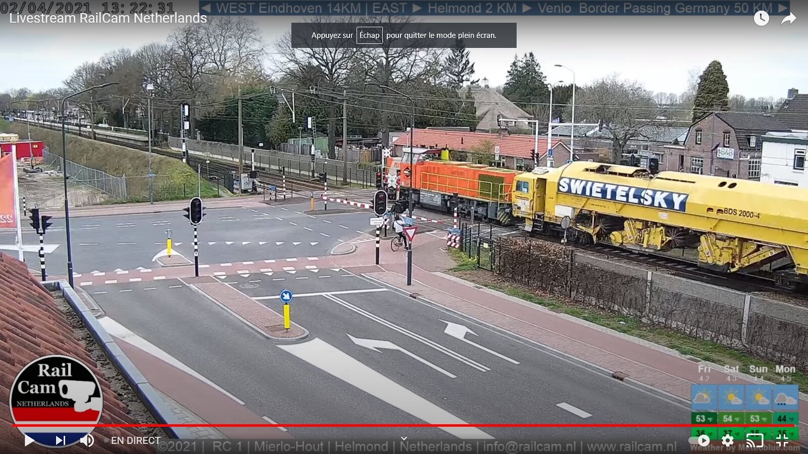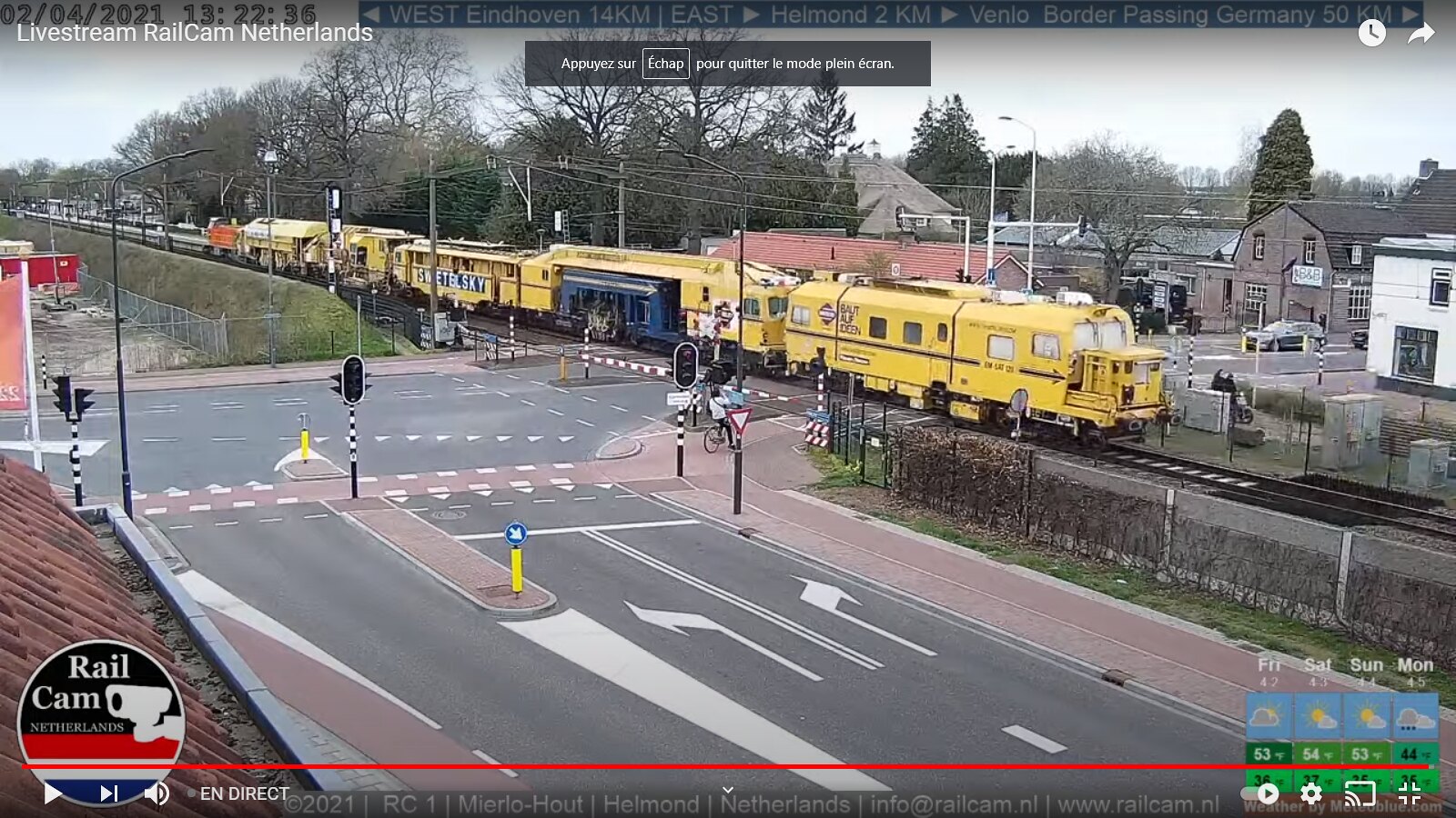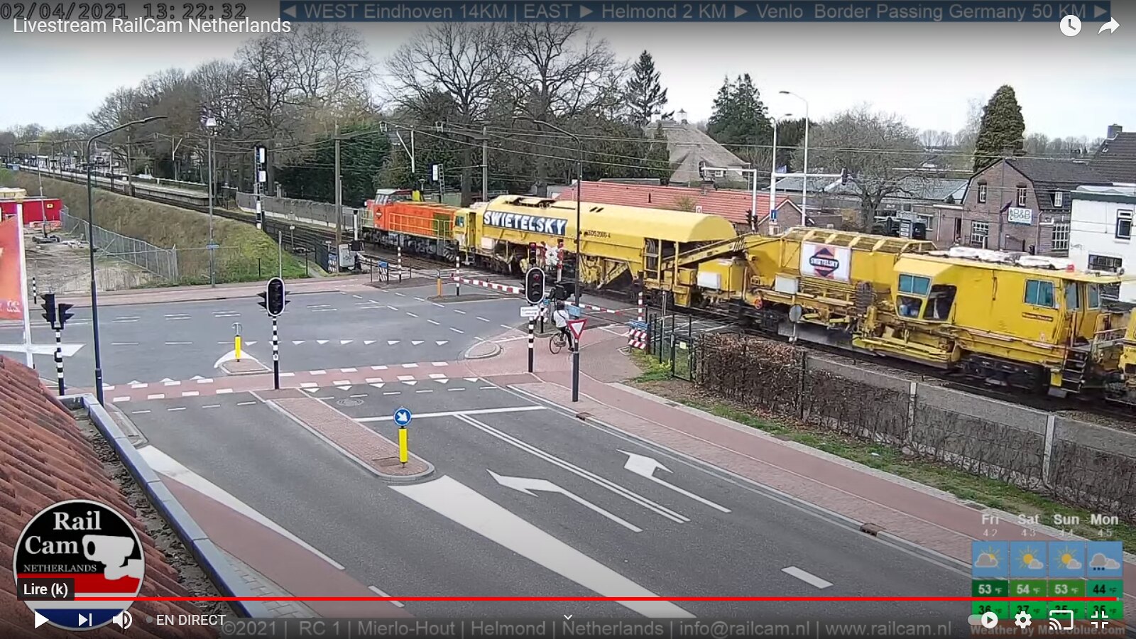 Et un engin de mesure Plasser & Theurer de type EM-SAT 120 (webcam de Mierlo Hout à 50 km de l'Allemagne, énorme trafic de fret, entrées et sorties vers Rotterdam).